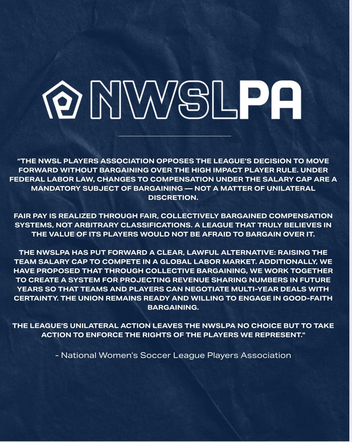 The NWSL announced its criteria for the newly established High Impact Player mechanism. The criteria have issues, and the NWSLPA has already pushed back.