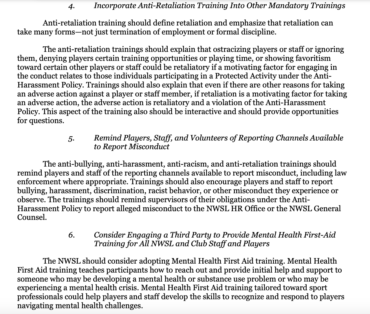 The NWSL has made it known that they are taking these matters seriously, but it seems the league has not quite met the recommendations laid out in the NWSL/NWSLPA joint report.
