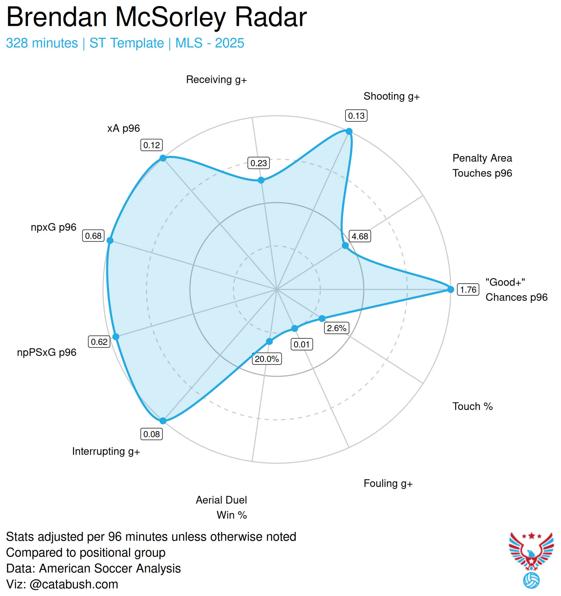 Klauss had not been an efficient finisher over the past two seasons, but his skill set – his hold-up play and vision – won’t be easily replaced with the players currently on the roster. A trio of Becher, Teuchert, and Brendan McSorely can work, but it’s a gamble that Damet’s attacking approach won’t need a true target striker in the mould of Klauss. Perhaps the attack won’t be as reliant on a player who can drag CBs out of position with his physical play, perhaps Becher will have better finishing luck, and perhaps McSorely will be able to replicate his 2025 success with full-time minutes.