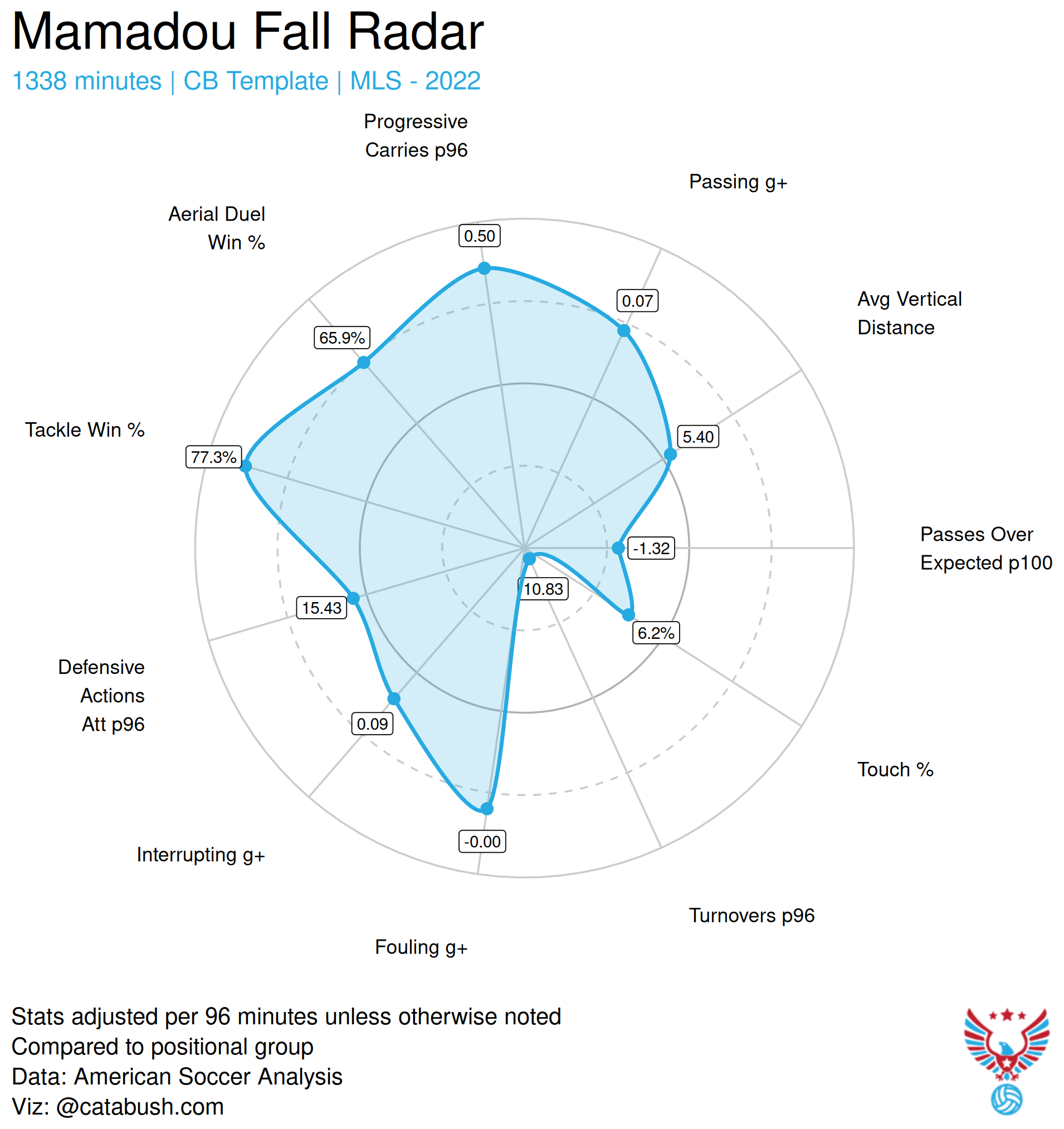 He joins fellow Senegalese CB Fallou Fall in looking to MLS as a proving ground. The young Senegalese duo can play to either side of Timo Baumgartl, who was also a top 10 CB in goals added per 96 minutes last season, and could give Damet one of the more creative back three pairings in MLS.