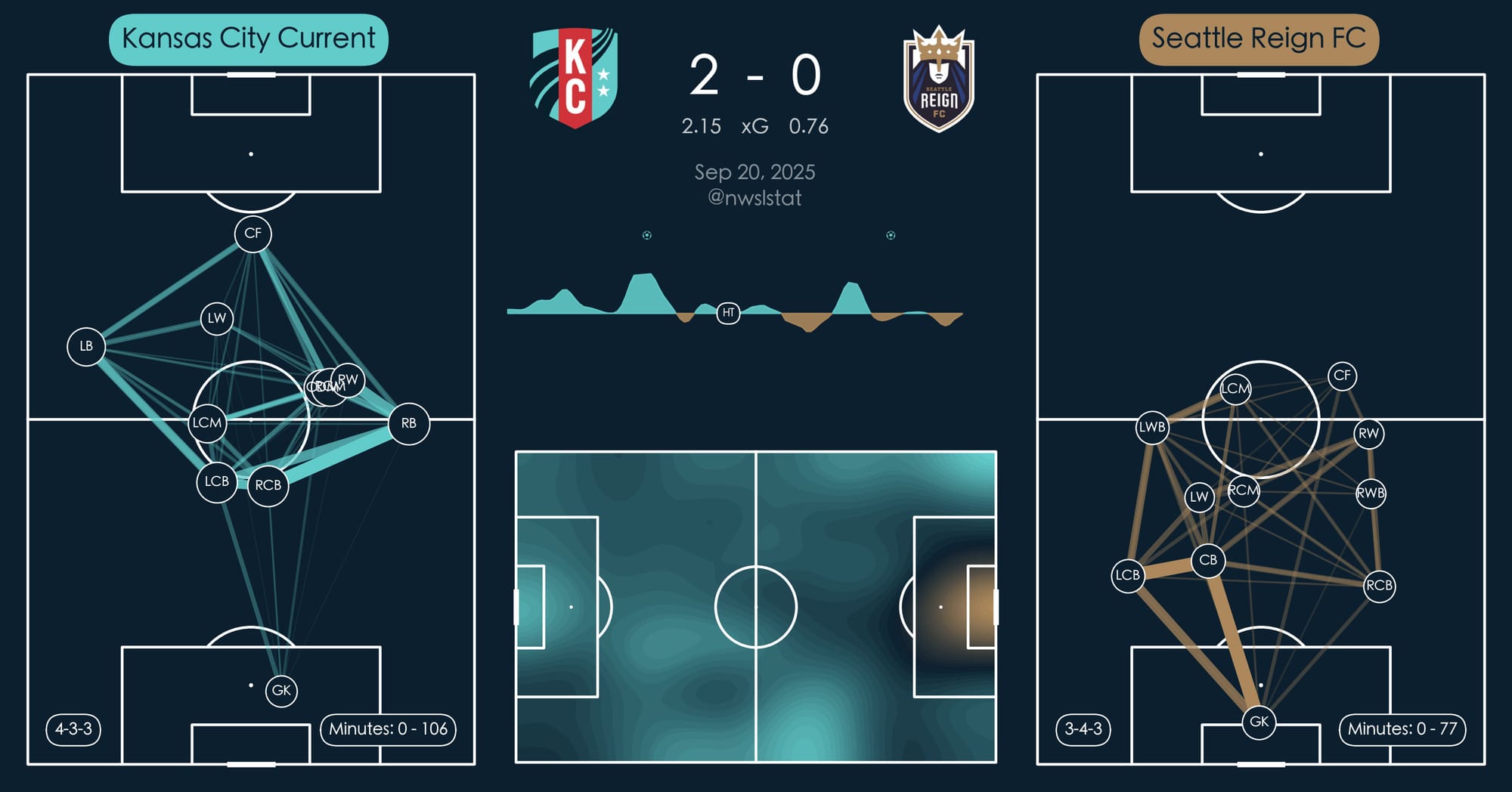 When overpowered in Kansas City, the Reign could not find a way to generate attacking chances. Vlatko Anodonovski’s side pinned the Reign into their own half, forcing Seattle’s average possession starting point deeper and deeper as they struggled playing through any sort of press.